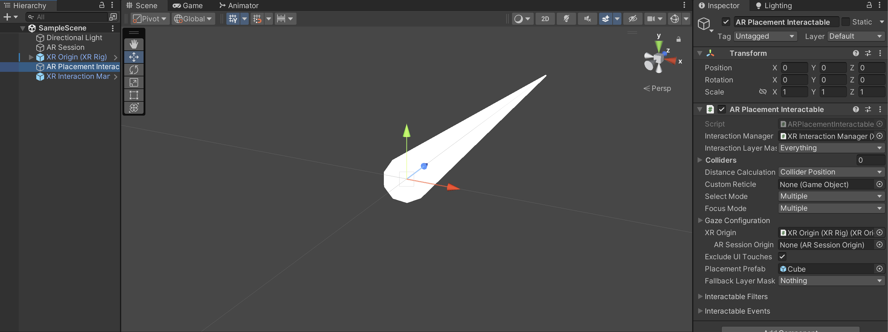 AR Placement Interactable를 추가하고 Interaction Manager에