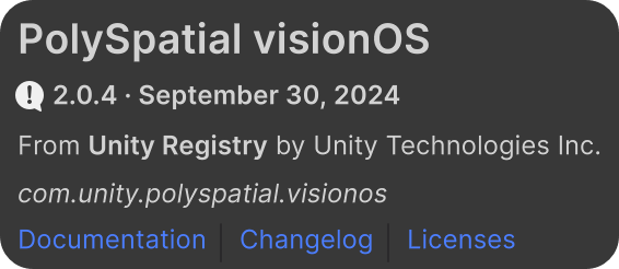 Apple visionOS XR Plugin, PolySpatial visionOS, PolySpatial 패키지 다운로드