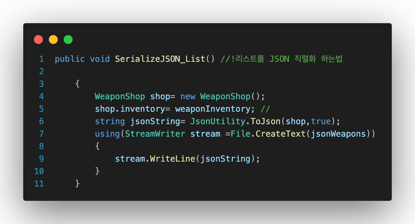 그 대신에 유니티에서는 System. Text 네임스페이스를 사용하고 JsonUtility라는 자체 JSON 시리얼라이저 클래스를 구현한다.