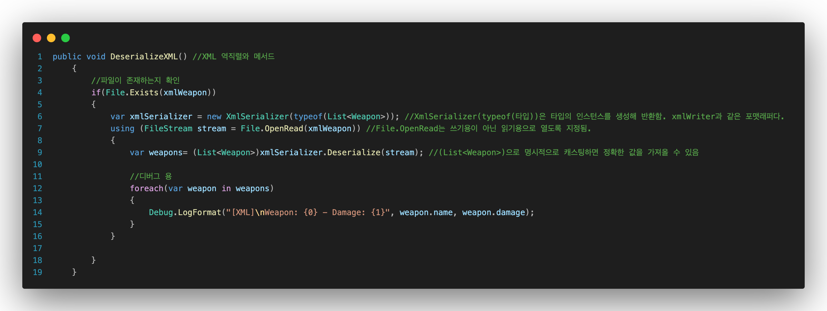 weaponInventory 리스트를 xmlWeapon파일에 xml형식으로 변환해 저장한다.
