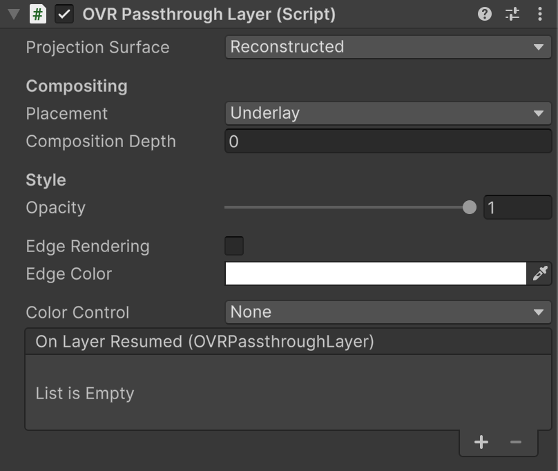 Projection Surface: Passthrough가 투영 될 표면의 유형을 설정할 수 있다.