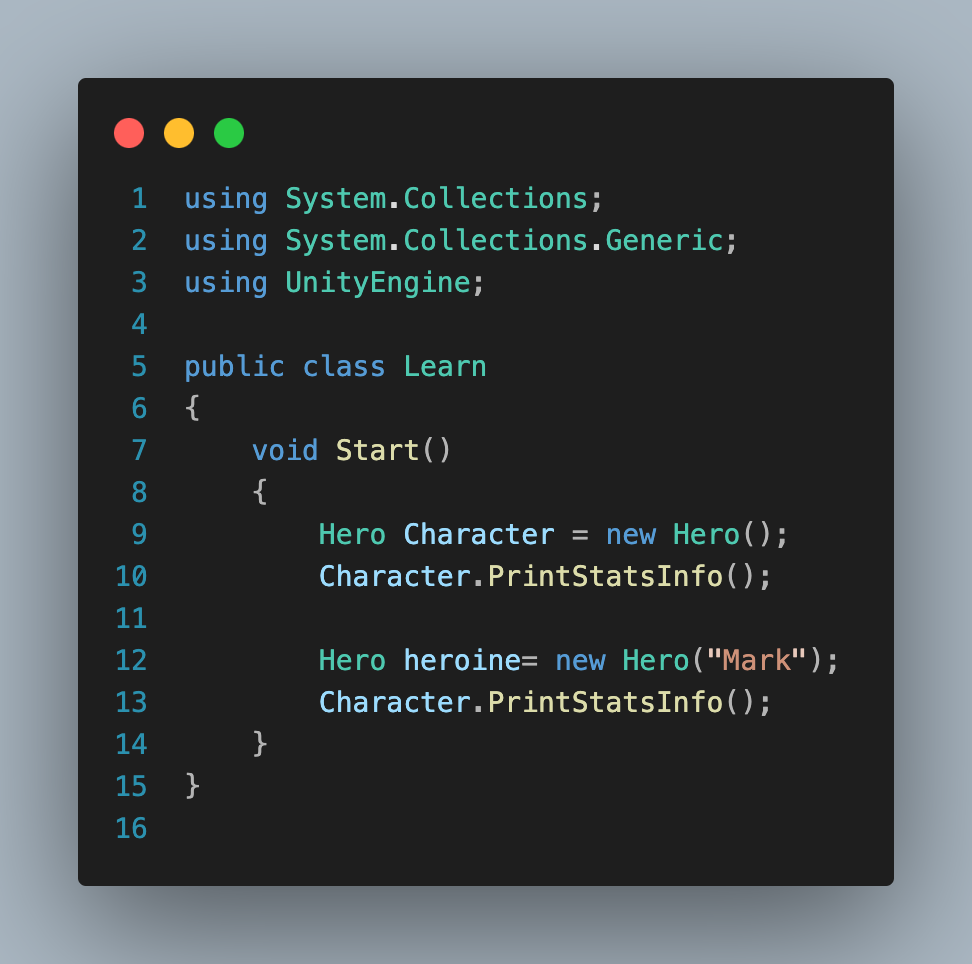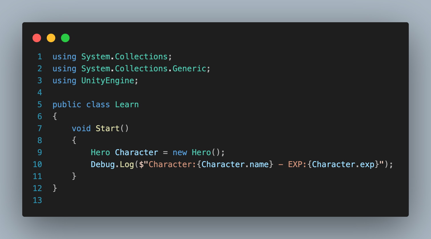 여러 출력이 필요하다면 Hero스크립트에 PrintStatsInfo메서드를 생성해 Learn스크립트를 간결하게 사용할 수 있다.
